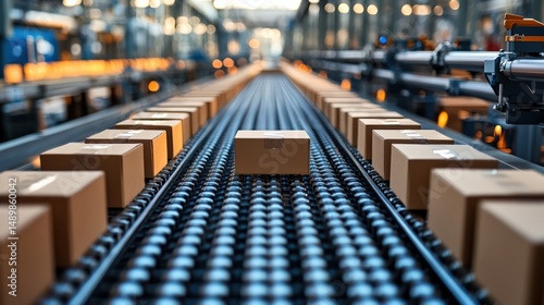 © Rezeki, Obraz premium Packages moving on a conveyor belt in a modern distribution center