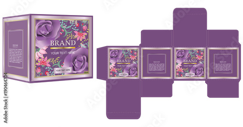 © Bravekanyawee, Obraz premium Packaging design for cosmetic or perfume product, luxury flowers box design template and mockup box. illustration vector.