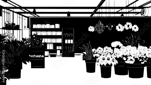 Naklejka premium Packaging of flowers inside a large facility organized for international export, Vectorized Plant Art