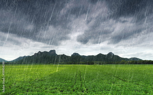© geargodz, Fototapeta premium padający deszcz w Khao Jeen Lae, góra w Lopburi, Tajlandia