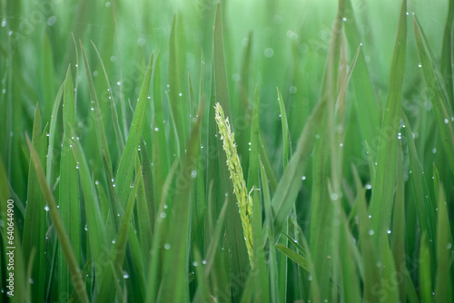 Obraz premium Paddy grass field in dew drops