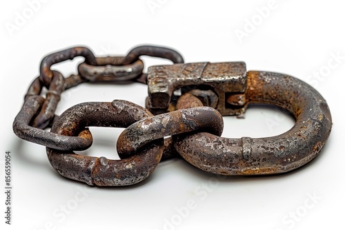 Obraz premium Padlock and chain isolated on a white background