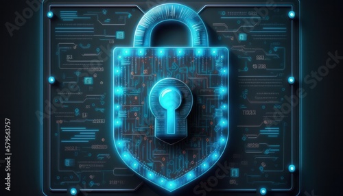 Obraz premium Padlock Cybersecurity, digital lock technology data protection background generative ai