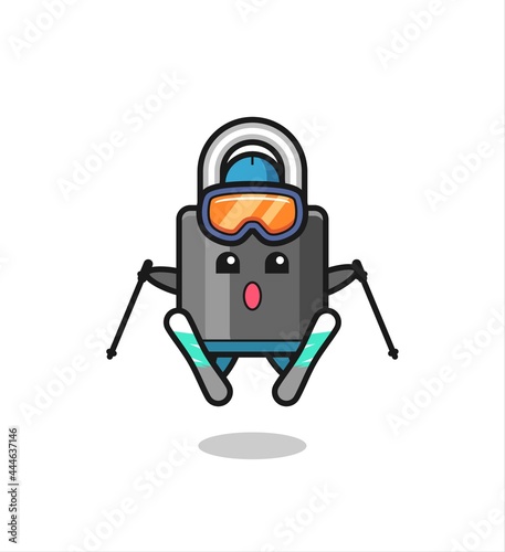 © heriyusuf, Fototapeta premium padlock mascot character as a ski player