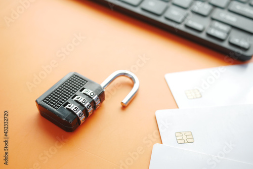 Fototapeta premium padlock on credit card, Internet data privacy information security concept