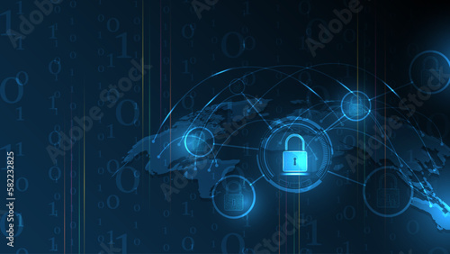 Obraz premium Padlock Security cyber digital concept Abstract technology background protect...
