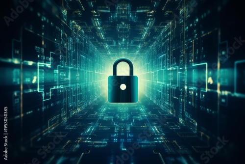 Fototapeta premium Padlock symbolizing security, protecting data within a technological tunnel