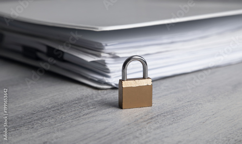 © andranik123, Naklejka premium Padlock with a documents. Document security
