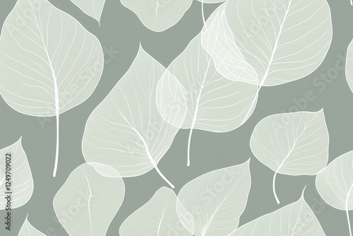 © Odrua Design, Obraz premium Padrão contínuo (seamless pattern) de folhas estilizadas em tons de verde com linhas delicadas em branco, criado com IA generativa.
