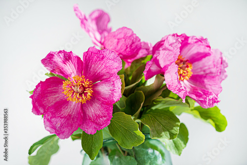 Fototapeta premium Paeonia daurica with green leaves