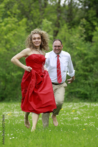 © Fotoimpressionen, Naklejka premium Paerchen laeuft auf einer Wiese