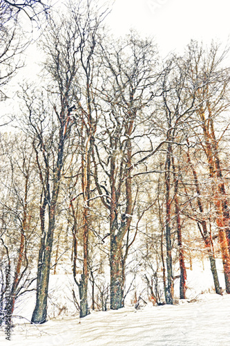Fototapeta premium Paesaggio con bosco invernale.