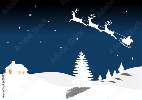 © Gabriele Giorgetti, Naklejka premium Paesaggio di Natale in blu. Christmas blue scene.