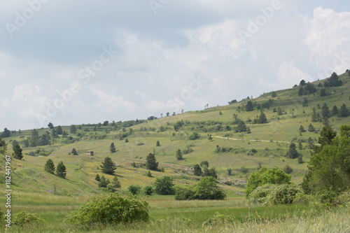 © nidafoto, Naklejka premium Paesaggio nella valle al Monte Della Selva, Parco Nazionale Gran Sasso e Monti della Laga, inizio dell'estate