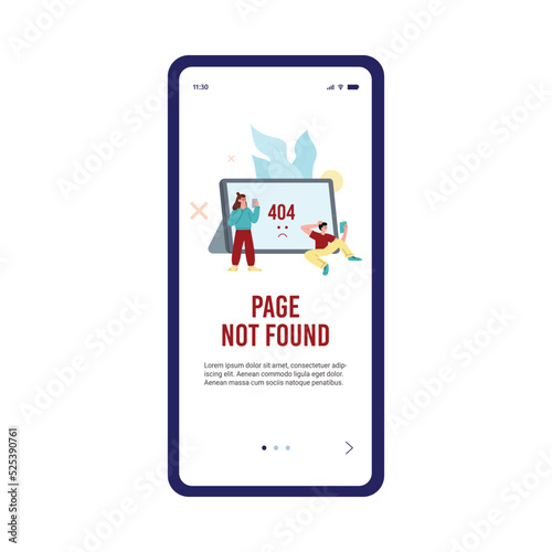 © Kudryavtsev, Obraz premium Page not found 404 error for mobile app onboarding screen vector illustration.