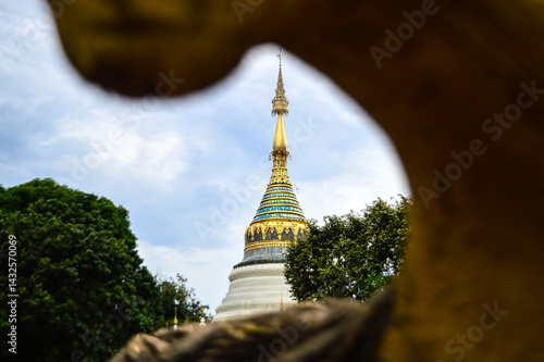 Naklejka premium Pagoda and Chapel, Lanna Architecture, Symbols of Buddhism, South East Asia...