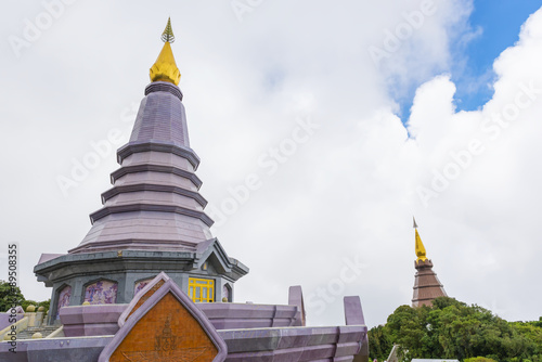 Naklejka premium Pagoda at Doi Inthanon national park after rain. Chiang Mai ,Thailand.
