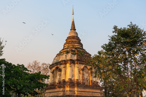 Fototapeta premium Pagoda at Wat Jet Yod, Phra Aram Luang, Chiang Mai Province, Thailand., which...