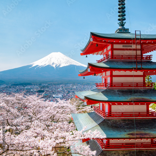 © eyetronic, Fototapeta premium Pagoda Chureito z górą Fuji w tle w Japonii