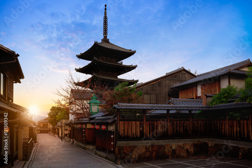 Obraz premium Pagoda Yasaka i ulica Sannen Zaka rano, Kioto, Japonia