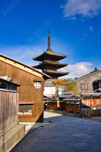 Naklejka premium Pagoda Yasaka i ulica Sannen Zaka rano, Kioto, Japonia