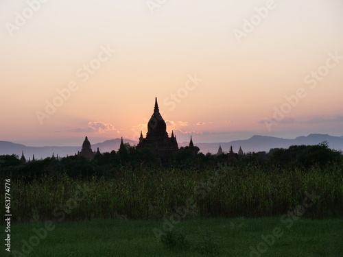 Obraz premium Pagodas field at sunset Bagan , Myanmar