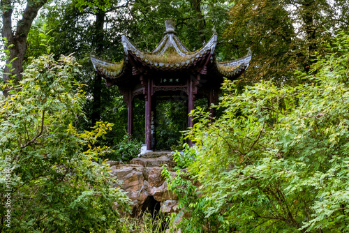 © Hadrien, Fototapeta premium Pagode dans le jardin chinois du Parc Bethmann à Francfort-sur-le-Main