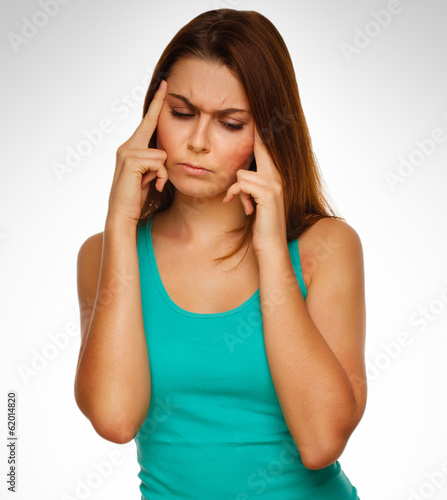 © maxximmm, Fototapeta premium pain woman stress tired headache, holding hands his behind head,