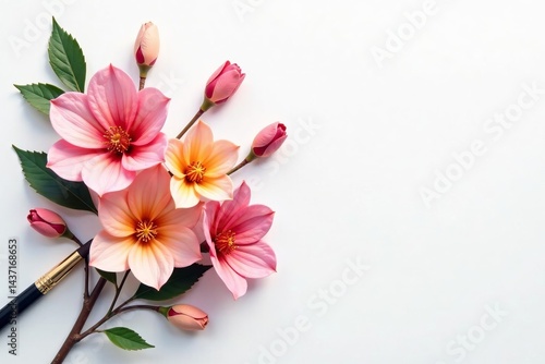 Naklejka premium Paint brush made of pastel flowers on white background, brush, creativity,...