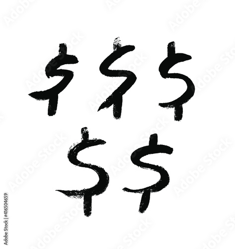 © pomolchim, Naklejka premium Paint drawing set of black Dollar symbol on white background. Hand drawn abstract illustration grunge elements. Vector abstract objects for design