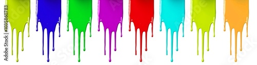 © David Santos Mendoza, Naklejka premium Paint dripping in different colors on transparent background