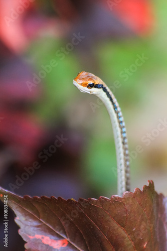 Naklejka premium Painted bronze back tree snake (Dendrelaphis pictus) found in Southeast Asia,...