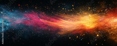 © Karan Jonny, Obraz premium Painted brush strokes of sparks on a black background, creating a dynamic, visually striking texture. This abstract design can be used for modern art, advertising, or creative projects, Generative AI