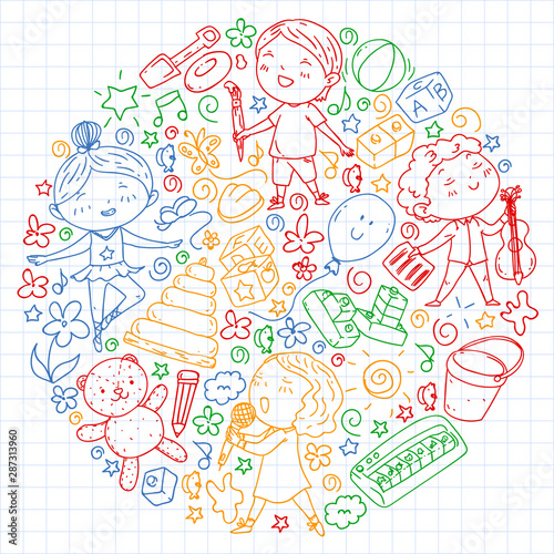 Fototapeta premium Painted by hand style pattern on the theme of childhood. Vector illustration...