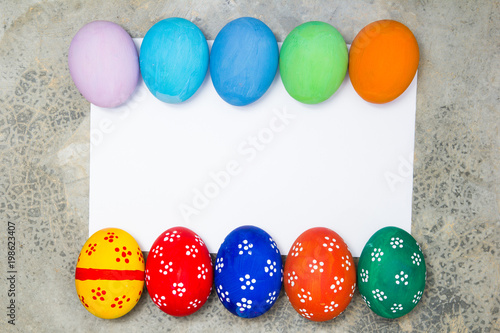 Obraz premium Painted Easter eggs put on the Polished floor ,easter day