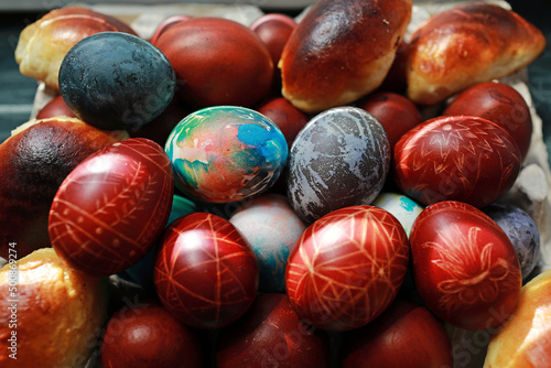© prohor08, Obraz premium painted easter eggs with ukrainian ornaments