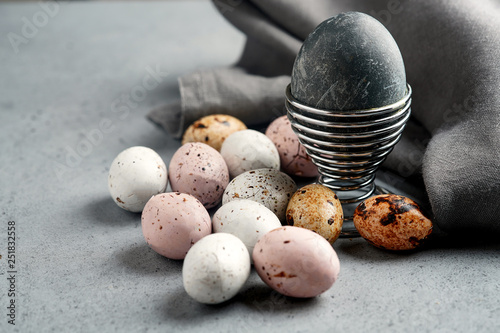 Obraz premium Painted Easter quail eggs on a concrete background