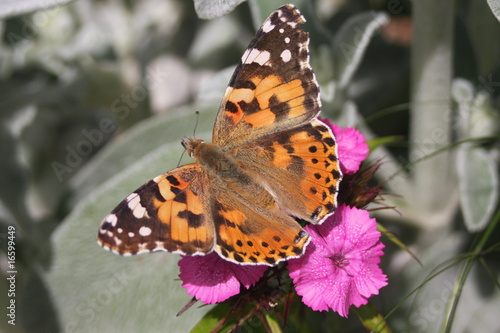 © jade, Obraz premium Painted lady butterfly on sweet william garden flower