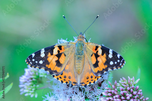 Fototapeta premium Painted Lady butterfly, Vanessa Cardui, feeding