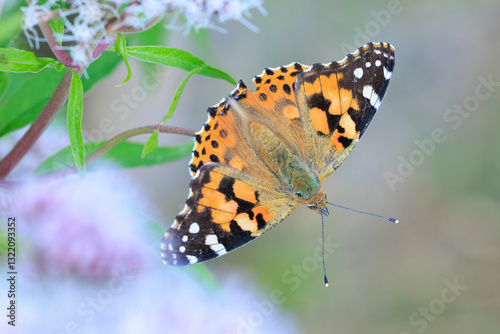 Fototapeta premium Painted Lady butterfly, Vanessa Cardui, feeding