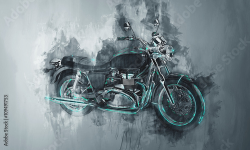 © XtravaganT, Fototapeta premium Painted motorcycle bike in gray
