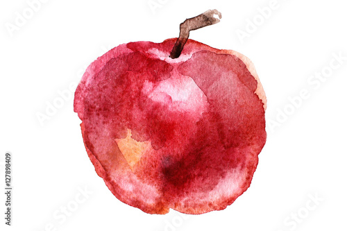 © kellyreekolibry, Naklejka premium Painted watercolor red apple close-up