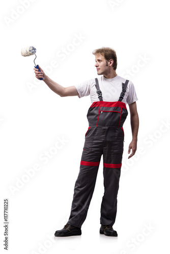 © Elnur, Fototapeta premium Painter with roller brush isolated on white