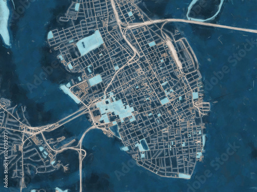 © Vincent, Fototapeta premium Painterly Style City Map of Charleston South Carolina, USA in a Blue Color Scheme.
