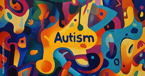 Obraz premium Painting Consisting of Bright Abstract Forms and Colors Reflecting Autism...
