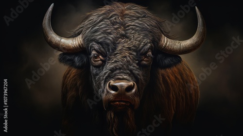 © Kateryna Artamonova, Naklejka premium Painting of a Bison With Majestic Horns. Generative AI.