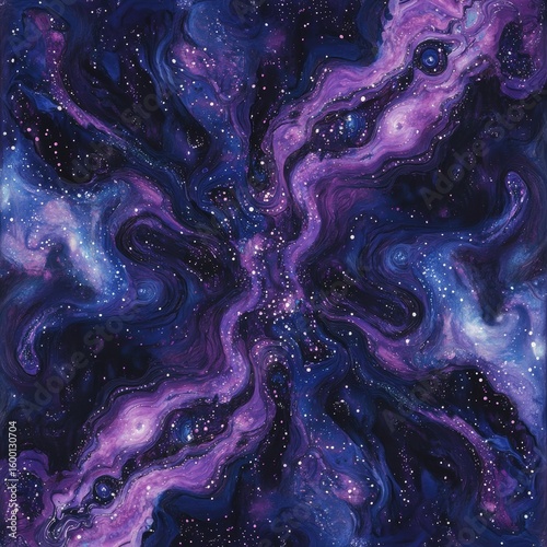 © Cloudyew, Obraz premium Painting of a galaxy with purple swirls and stars