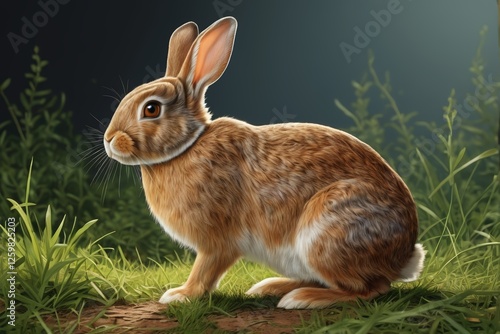 Fototapeta premium painting of a rabbit sitting in the grass in a field