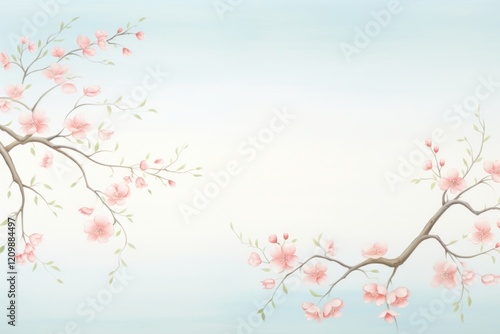 Fototapeta premium Painting of cherry blossom branches border backgrounds flower nature