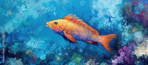 Fototapeta premium Painting of Creole wrasse swimming in vibrant blue waters